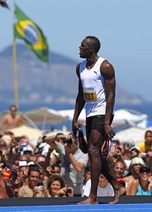 Шестикратный олимпийский чемпион ямаец Усэйн Болт начал сезон с победы в забеге на 150 метров на специальном треке, сооруженном на пляже Копакабана в бразильском Рио-де-Жанейро. Он показал результат 14,42 секунды, что на семь сотых медленнее, чем его же мировой рекорд, установленный им в уличном забеге в Манчестере в 2009 году. Фото AFP, REUTERS
