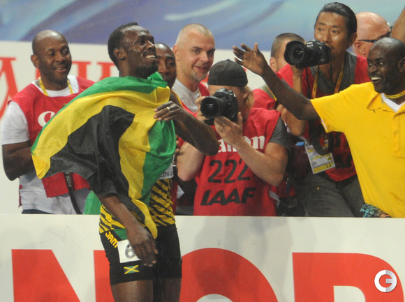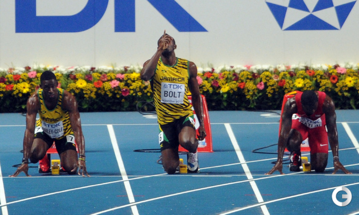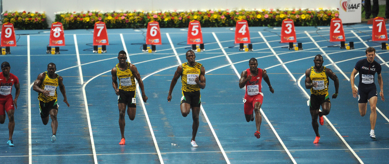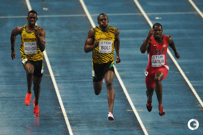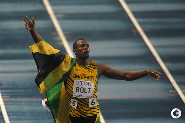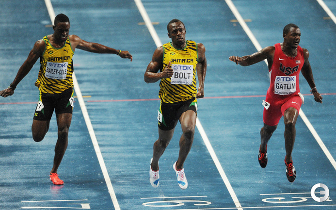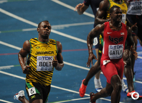 Москва. Чемпионат мира. Мужчины. 100 м. Финал. 1. Болт (Ямайка) – 9,77. 2. Гатлин (США) - 9,85. 3. Картер (Ямайка) - 9,95. Фото Федора УСПЕНСКОГО, "СЭ"