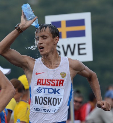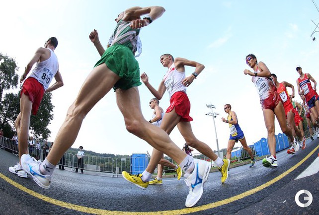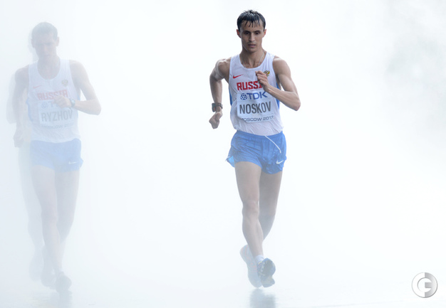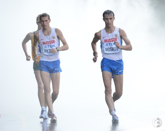 Москва. Легкая атлетика. Чемпионат мира. Мужчины. Ходьба, 50 км. 1. Хеффернан (Ирландия) – 3:37.56 – лучший результат сезона. 2. РЫЖОВ (Россия) – 3:38.58 - личный рекорд. 3. Таллент (Австралия) – 3:40.03… 7. НОСКОВ (Россия) – 3:41.36 - личный рекорд. На проходящем в Москве чемпионате мира золотую медаль в ходьбе на 50 км выиграли ирландец Роберт Хеффернан. Россиянин Михаил Рыжов стал вторым. Третьим к финишу пришел Джаред Таллент из Австралии. Еще один россиянин – Иван Носков стал седьмым. Фото AFP