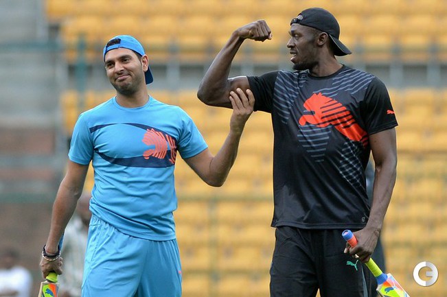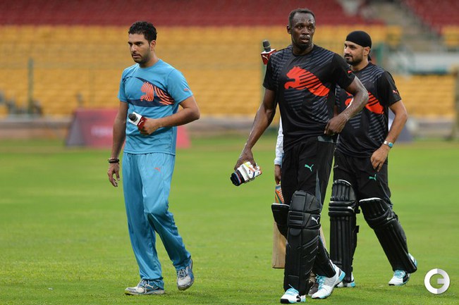Шестикратный олимпийский чемпион Усэйн Болт принял участие в крикетном матче. Ямайский бегун в рамках визита в Индию сыграет в товарищеской встрече со сборной звезд, которую соберет один из лучших игроков мира Юврадж Сингх. Игра состоится 2 сентября в Бангалоре на стадионе "Чиннасвами". Болт является большим поклонником крикета и неоднократно заявлял, что хотел бы играть на профессиональном уровне. Фото AFP и REUTERS