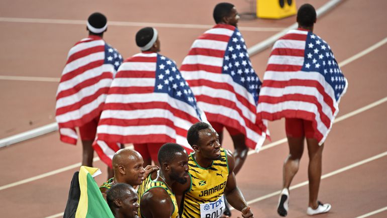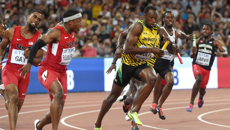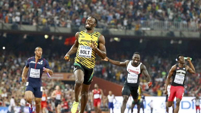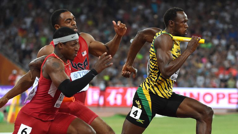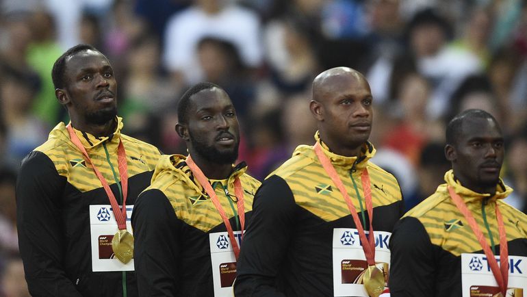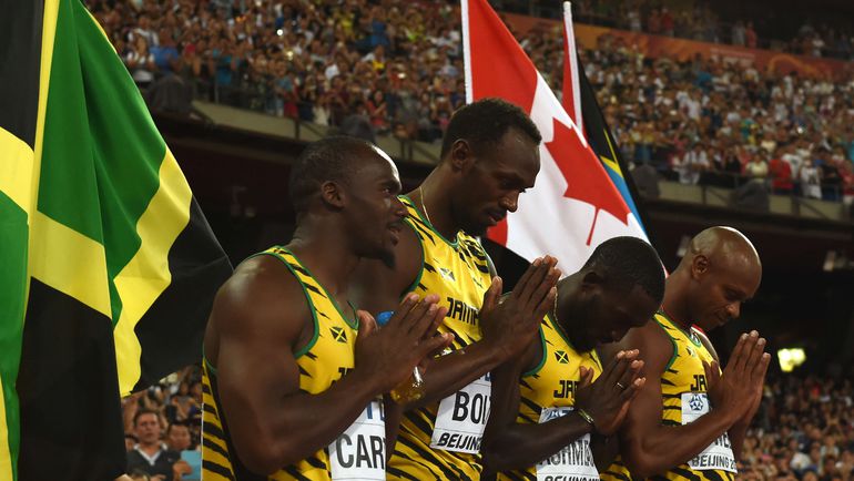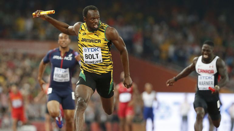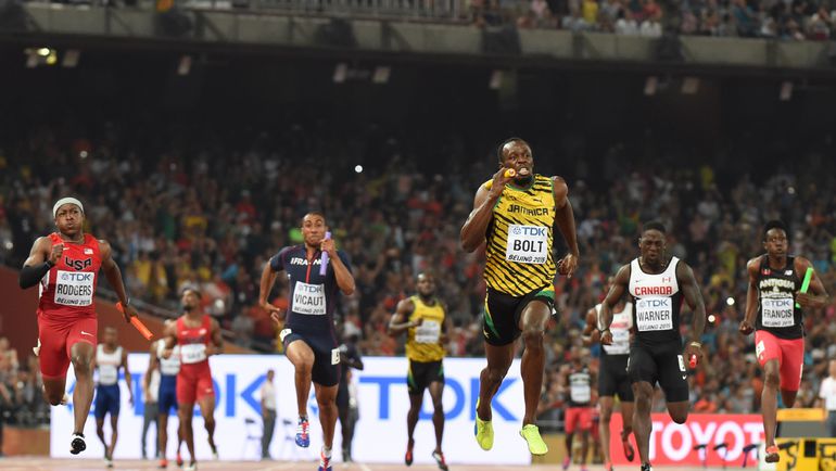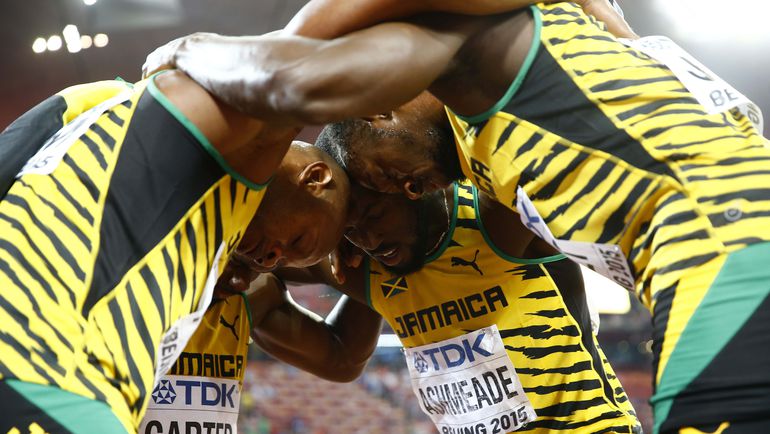 Пекин (Китай). Чемпионат мира. Мужчины. Эстафета 4x100 метров. 1. Ямайка (Картер, Пауэлл, Ашмид, Болт) – 37,36. 2. Китай (Мо Юсюэ, Се Чжэнье, Су Бинтянь, Чжан Пэймэн) – 38,01. 3. Канада (Браун, Де Грассе, Родни, Уорнер) – 38,13. Фото AFP, REUTERS