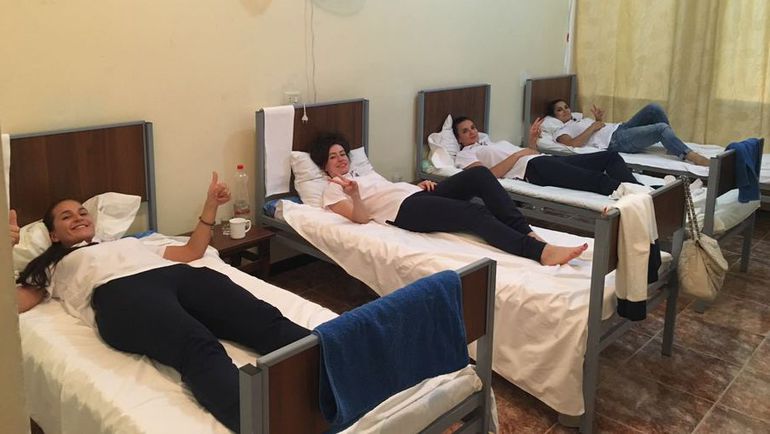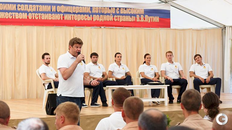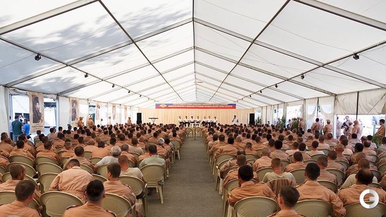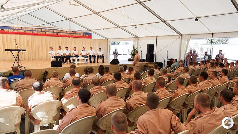 Двукратная олимпийская чемпионка Елена Исинбаева провела зарядку для российских военнослужащих на авиабазе Хмеймим в Сирии.