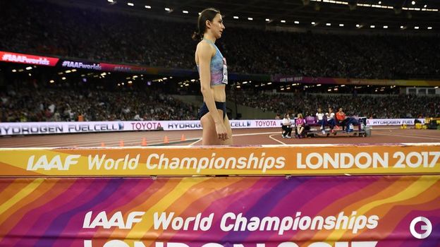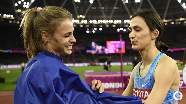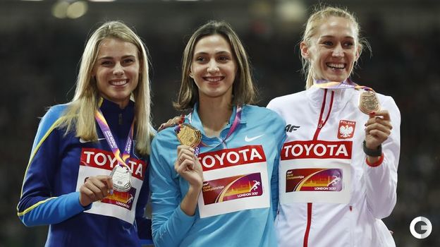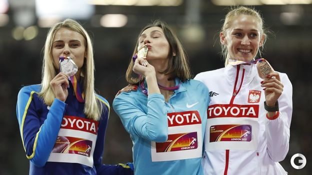 24-летняя россиянка Мария Ласицкене защитила титул чемпионки мира в женской высоте, выиграв с прыжком на 2,03 м. Победила, обняла соперниц из Украины и Польши - и не услышала свой гимн. Для нейтральных спортсменов играет торжественная мелодия ИААФ.