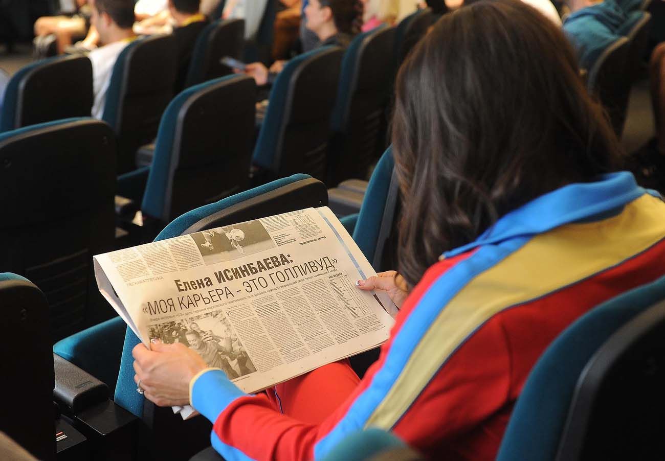 20.20. И еще пара слов про нашу Елену Прекрасную. Перед сегодняшней пресс-конференцией в Лужниках Исинбаевой не удалось раствориться в зале. Наш фотокорреспондент Федор УСПЕНСКИЙ не упустил кадр. А интервью чемпионки, если вы его не читали с утра пораньше, по ссылке.