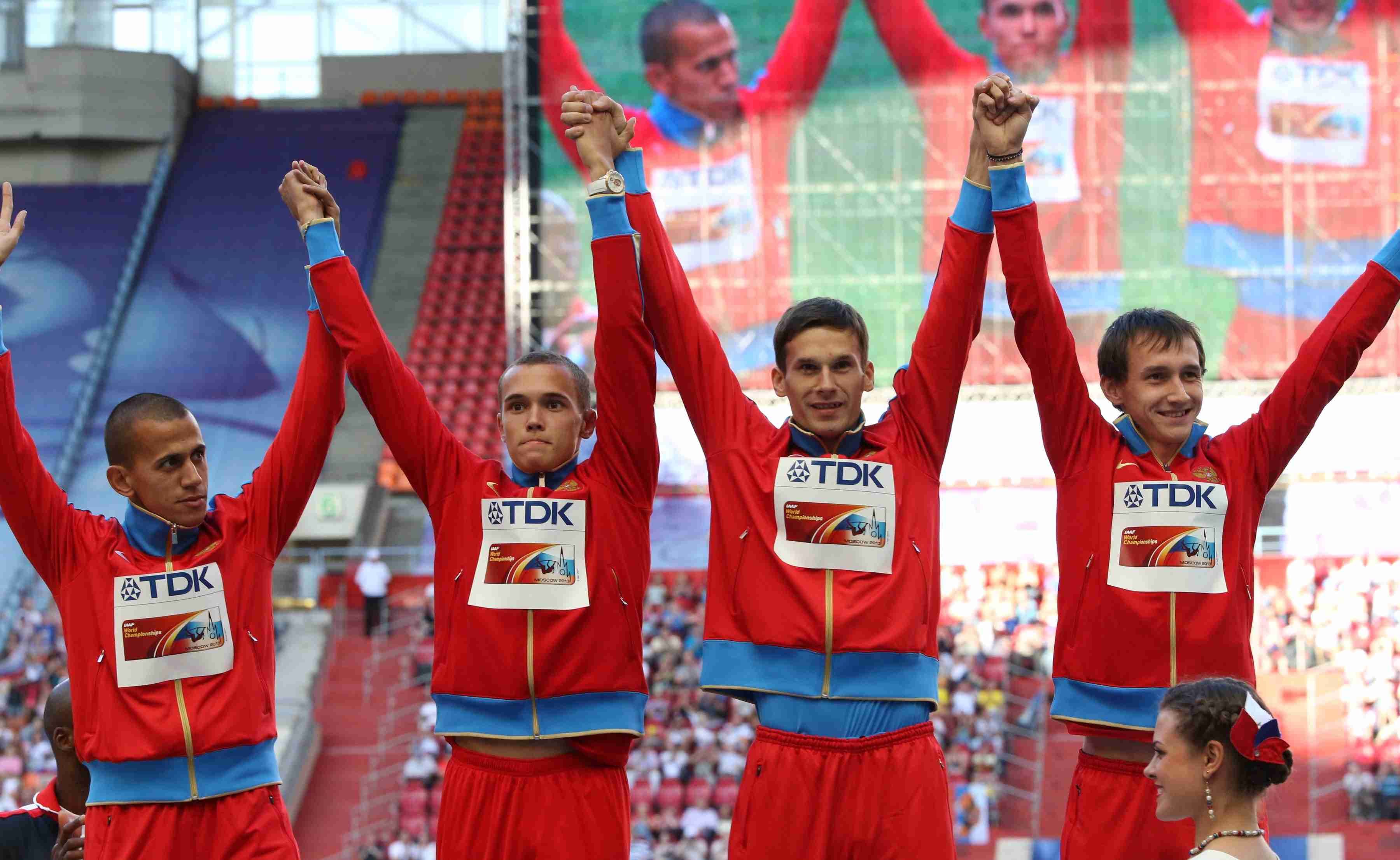 18.40 Церемония награждения! Мужская сборная России (Максим Дылдин, Лев Мосин, Сергей Петухов и Владимир Краснов), ставшая третьей в эстафете 4х400 м, получает бронзовые медали. Золото выиграла сборная США, серебро – Ямайка, которая опередила россиян всего на две сотые секунды.