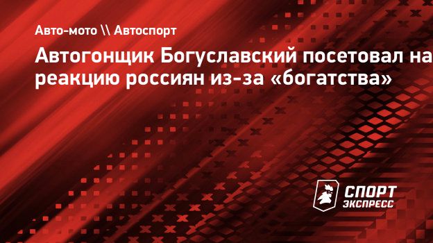 Автогонщик Богуславский посетовал на реакцию россиян из-за «богатства»
