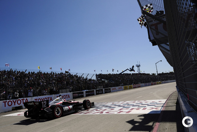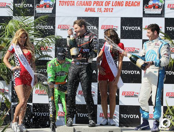 15.04.2012. Автоспорт. Кольцевые гонки. Команда "Пенске" выиграла третий этап "Мировой серии Indycar" из трех состоявшихся в этом году. Победу на трассе в Лонг-Бич одержал австралиец Уилл Пауэр. Фото - AFP