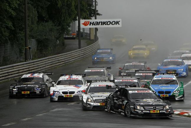Скорость "Мерседесов", выигравших в этом сезоне больше гонок, чем "Ауди" и BMW, вместе взятые, никого не удивила, но и без очередных труднообъяснимых явлений, способствующих успеху машин с трехлучевой звездой на капоте, не обошлось. Маттиас Экстрем за рулем "Ауди" был очень быстр, показав лучшие времена во втором и третьем сегменте квалификации - а в решающем четвертом шины на автомобиле шведа вдруг резко потеряли "цепкость". Почему это произошло - ни сам пилот, ни его инженеры сразу не смогли объяснить. Удалось ли им разгадать эту загадку к обеду воскресенья, было уже не так важно. Во-первых, гонка - в отличие от квалификации - проходила на мокрой трассе. Во-вторых, в первом повороте соперники так отделали болид Экстрема, что на полуразрушенном автомобиле швед смог дотянуть только до боксов. После этого гонщики "Ауди" окончательно ушли в тень и даже не пытались покушаться на места в первой тройке, хотя "Норисринг" считается домашней трассой ингольштадтской марки.