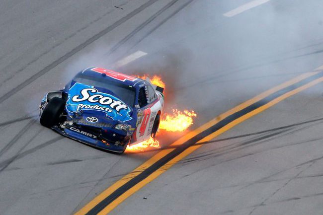 Тони Стюарт оказался не только главным виновником, но и главным шоу-меном дня: в один из моментов его Chevrolet Impala легла на двигавшиеся сзади машины чуть ли не кверху колесами и в таком положении проехала пару сотен метров, ни одной своей деталью не касаясь асфальта. Кстати, эту аварию - как и инцидент в Сузуке - сочли гоночным инцидентом, и никто из соперников не требовал дисквалифицировать Стюарта до конца сезона или вообще уволить (что призывают знатоки "Формулы-1" сделать с Романом Гросжаном за прегрешения помельче). Во-первых, массовые завалы на суперспидвеях все воспринимают как неизбежное зло. Во-вторых, при таком количестве пострадавших велики шансы, что у разбитых машин окажешься и ты сам, и твой основной соперник. В-третьих, потерявший больше всех Уолтрип в былые годы (сейчас он выступает эпизодически) был известен как заправский грубиян и накрошил немало чужих машин - так что эту аварию при желании можно считать своеобразным проявлением высшей справедливости.