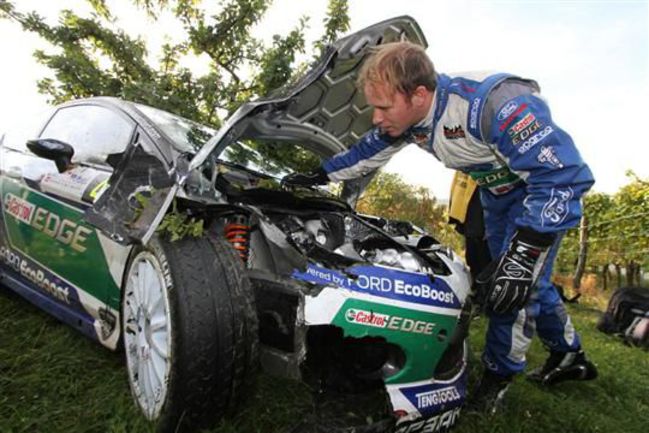 Бой между столбом и Ford Fiesta RS закончился, кстати, вничью. Послав соперника в нокаут, раллийный автомобиль и сам далеко не уехал - поврежденное рулевое управление просто не позволило Солбергу выехать из виноградника. Норвежец вернулся в гонку днем позже, но 40 штрафных минут за пропуск 8 спецучастков не оставляли ему шансов вернуться в первую десятку: на финише гонки пилот "Форда" был 26-м.