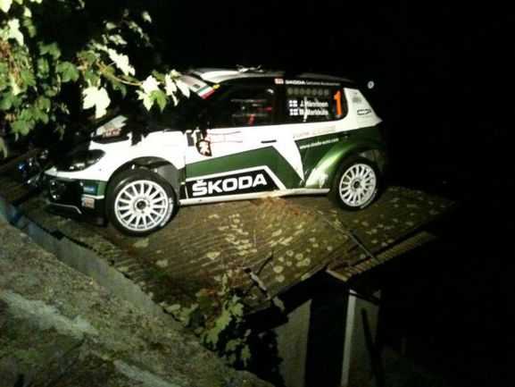 Финн переборщил со скоростью в достаточно быстром (проходится на четвертой передаче) левом повороте. Пробив ограждение трассы, Fabia перевернулась и по логике вещей должна была упасть с откоса двухметровой высоты, но по счастливому стечению обстоятельств приземлилась на крышу расположенного поблизости гаража. Забавно, что штурман Миркко Марккула даже при перевороте в темноте смог точно сориентироваться: "Мы упали на чью-то крышу!" - говорит он сразу после аварии, в то время как Хяннинен заводит заглохший при перевороте мотор и пытается уехать с крыши своим ходом! К сожалению, за кадром осталось все самое интересное - и реакция владельцев участка на поздний визит незваного гостя, и процесс эвакуации раллийного автомобиля со столь необычного парковочного места...