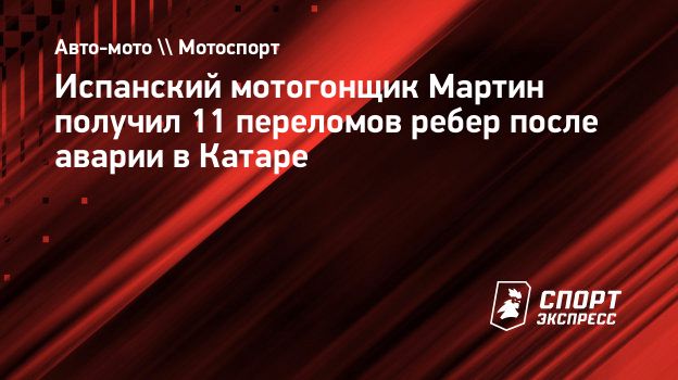 Как сообщает DAZN, Мартин получил 11 переломов ребер, а также минимальное воспаление плевры на фоне пневмоторакса. Для него данная гонка была первой после того, как на тестах в Малайзии в феврале он получил травмы руки и ноги.