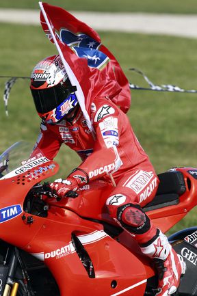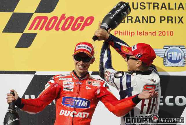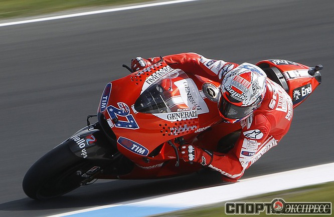 16.10.2010. Филлип-Айленд. Чемпионат мира по шоссейно-кольцевым мотогонкам. 16-й этап. "Гран-при Австралии". MotoGP. 1. Стоунер (Австралия, "Дукати") – 1.30,107. Фото AFP