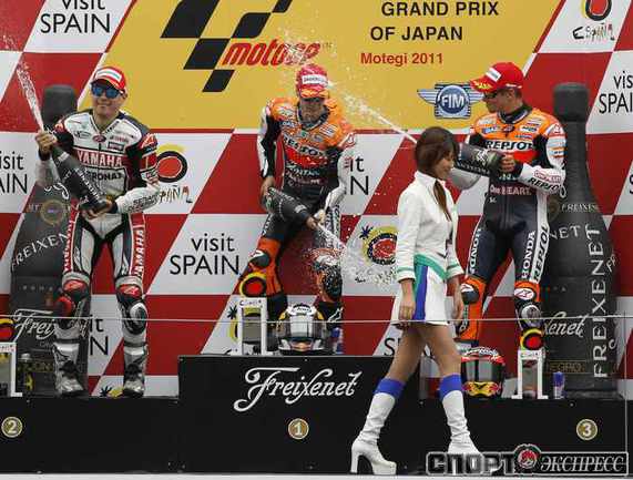 Мотоспорт. Мотеги (Япония). Чемпионат мира по шоссейно-кольцевым мотогонкам. 15-й этап. "Гран-при Японии". Дани Педроса выиграл "Гран-при Японии" в классе MotoGP. Фото REUTERS