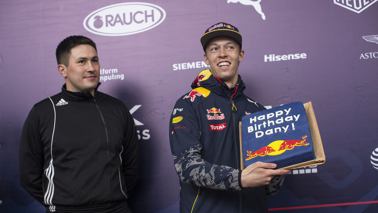 В позапрошлом году Даниил Квят играл перед "Гран-при России" в футбол, в прошлом - в хоккей. На этот раз ему организовали знакомство с бобслеем. Пилота "Ред Булл" привезли на олимпийскую трассу "Санки", один из лидеров сборной России Александр Касьянов сорвал полотно - и Квят ахнул. На льду красовался боб с его фамилией на борту. Радостный гонщик уселся в боб, стал расспрашивать профессионалов о системе управления. Но по треку не прокатился - команда не рискнула отправлять его по желобу. Все-таки дело травмоопасное... Вместо Квята это сделала звездная сноубордическая пара - двукратный олимпийский чемпион Вик Уайлд и бронзовый призер Игр-2014 Алена Заварзина.