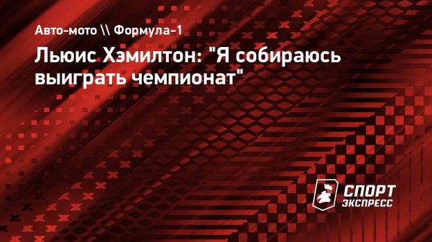 Льюис Хэмилтон: "Я собираюсь выиграть чемпионат"