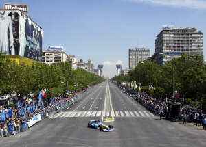 Новый герой испанских болельщиков пилот "Рено" Алонсо Фернандо в рамках промо-акции при большом скоплении публики прокатился на своем гоночном болиде по улицам Мадрида, разогнавшись до 150 миль в час. "Было немного странно ехать по улицам города на боевой машине", - признался испанец. |