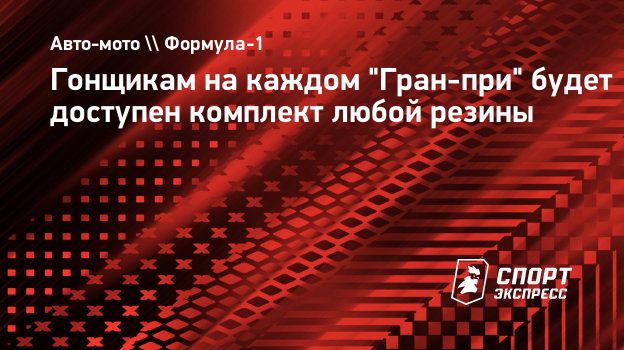 Гонщикам на каждом "Гран-при" будет доступен комплект любой резины