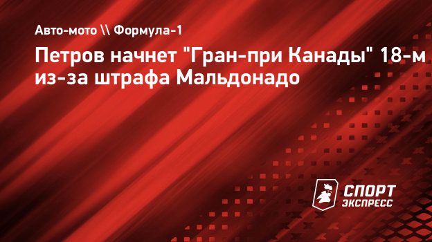 Петров начнет "Гран-при Канады" 18-м из-за штрафа Мальдонадо