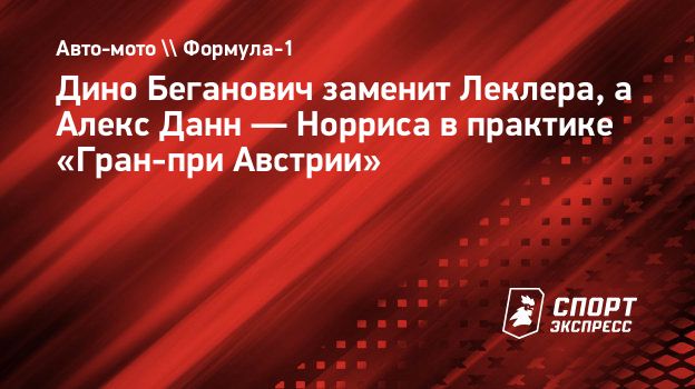 Дино Беганович заменит Леклера, а Алекс Данн — Норриса в практике «Гран-при Австрии»