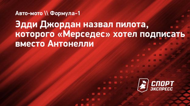 Эдди Джордан, 76-летний основатель и экс-владелец команды «Джордан» в «Формуле-1», высказал мнение о том, какого пилота руководство «Мерседеса» должно было подписать вместо 19-летнего итальянского гонщика Андреа Кими Антонелли.