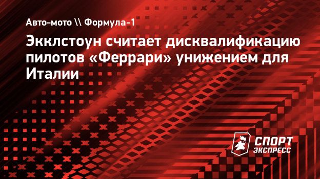 Экклстоун — о дисквалификациях пилотов «Феррари»: «Италия никогда не испытывала такого унижения»