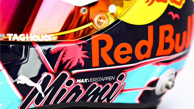Гонщик «Руд Булл» и действующий чемпион мира Макс Ферстаппен представил особую версию оформления своего гоночного шлема, специально подготовленную для предстоящего «Гран-при Майами».