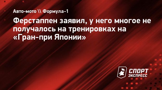 Пилот «Ред Булл» Макс Ферстаппен прокомментировал итоги двух тренировок на «Гран-при Японии».