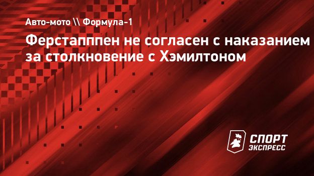 Пилот команды «Ред Булл» Макс Ферстаппен заявил, что не согласен со штрафом, который он получил за столкновение с Льюисом Хэмилтоном («Мерседес») на «Гран-при Италии». Оба гонщика сошли с дистанции после этого инцидента.