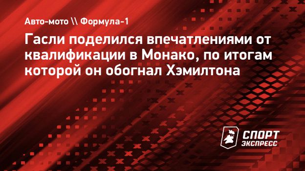 Пилот «Альфа Таури» Пьер Гасли поделился впечатлениями от квалификации «Гран-при Монако», по итогам которой он оказался выше семикратного чемпиона «Формулы-1» Льюиса Хэмилтона.