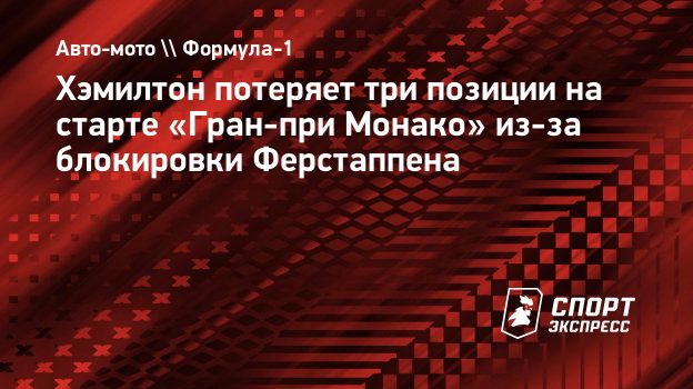 Хэмилтон потеряет три позиции на старте «Гран-при Монако» из-за блокировки Ферстаппена