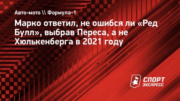 Марко ответил, не ошибся ли «Ред Булл», выбрав Переса, а не Хюлькенберга в 2021 году