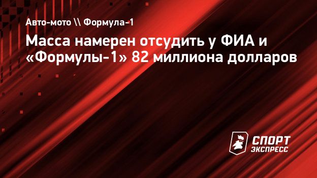 Масса намерен отсудить у ФИА и «Формулы-1» 82 миллиона долларов