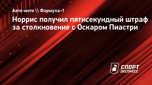 Норрис получил пятисекундный штраф за столкновение с Оскаром Пиастри
