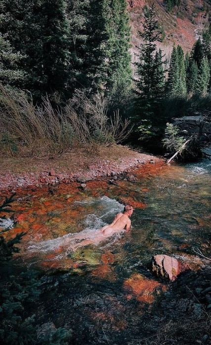 32-летний гонщик показал снимок, на котором он голышом купается в горной речке, которая находится в городе Аспен (Колорадо).