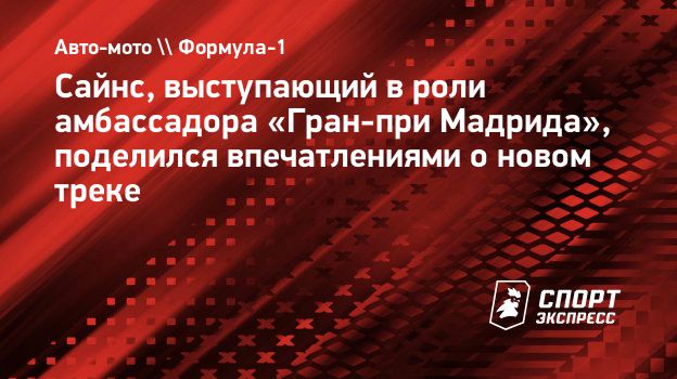 Испанский гонщик «Формулы-1» Карлос Сайнс, выступающий в роли амбассадора «Гран-при Мадрида», поделился впечатлениями о новом треке.