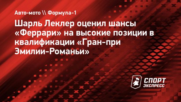 Пилот «Феррари» Шарль Леклер сомневается, что команда сможет занять лидирующие позиции в квалификации «Гран-при Эмилии-Романьи».