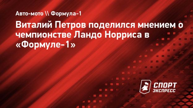Генеральный директор программы развития автоспорта SMP Racing, первый российский гонщик в истории «Формулы-1» Виталий Петров в комментарии для «СЭ» отреагировал на чемпионство пилота «Макларена» Ландо Норриса в сезоне-2025 «Формулы-1».
