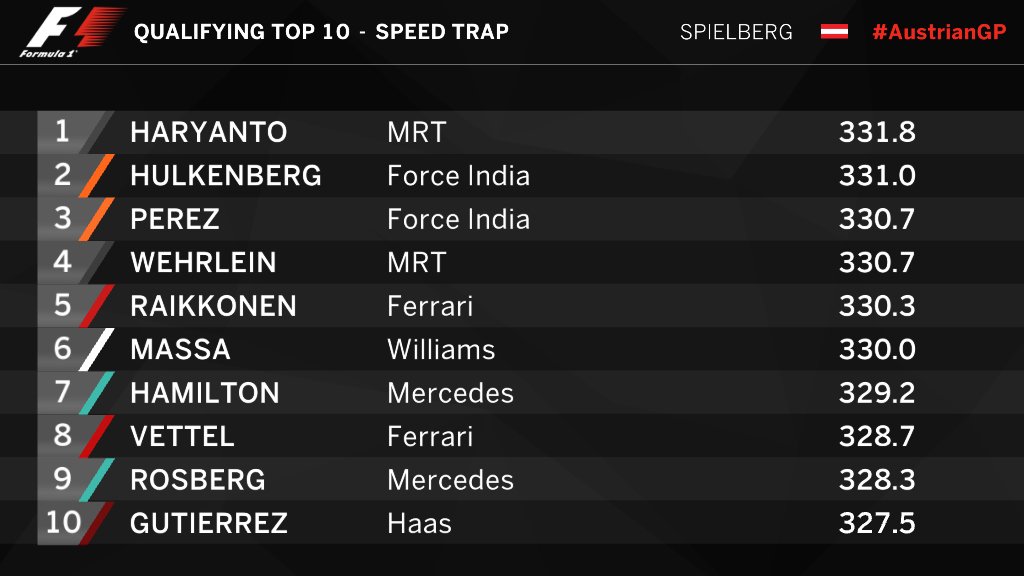 Борьбу в квалификации, кроме Квята и Сайнса, завершают Магнуссен, Палмер, Харьянто, Эрикссон и Наср. Примечательно, что "Манор" усилиями Верляйна впервые в сезон вышел во второй сегмент квалификации.