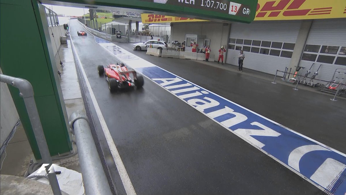 В самом начале квалификации дождя ничто не предвещало. И вот. Команды уже сообщают пилотам, что вот-вот погода испортится.