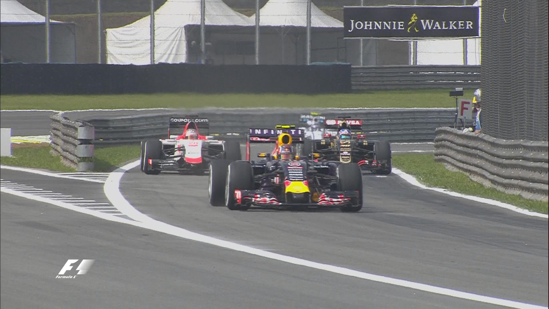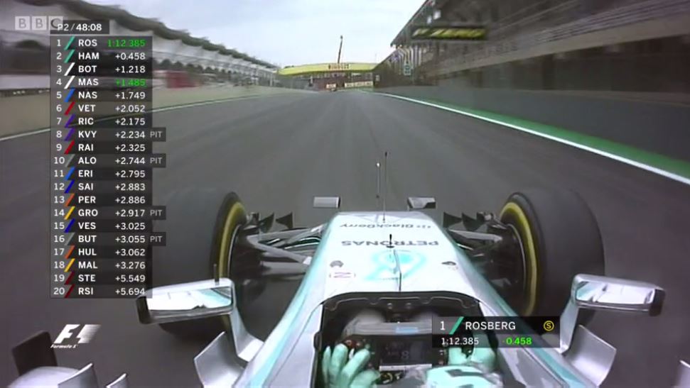 Хэмилтон заезжает на пит-стоп. На несколько секунд на трассе остаются только Росберг и оба "Ред Булла".