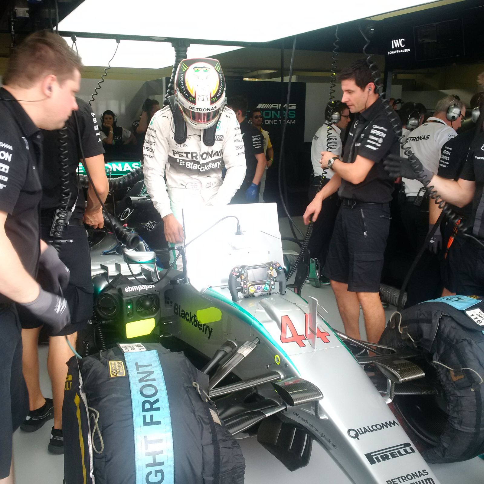 Интересный момент: Росберг репетирует старт с пит-лейна. По его словам, есть проблемы с переходом на высшую передачу.