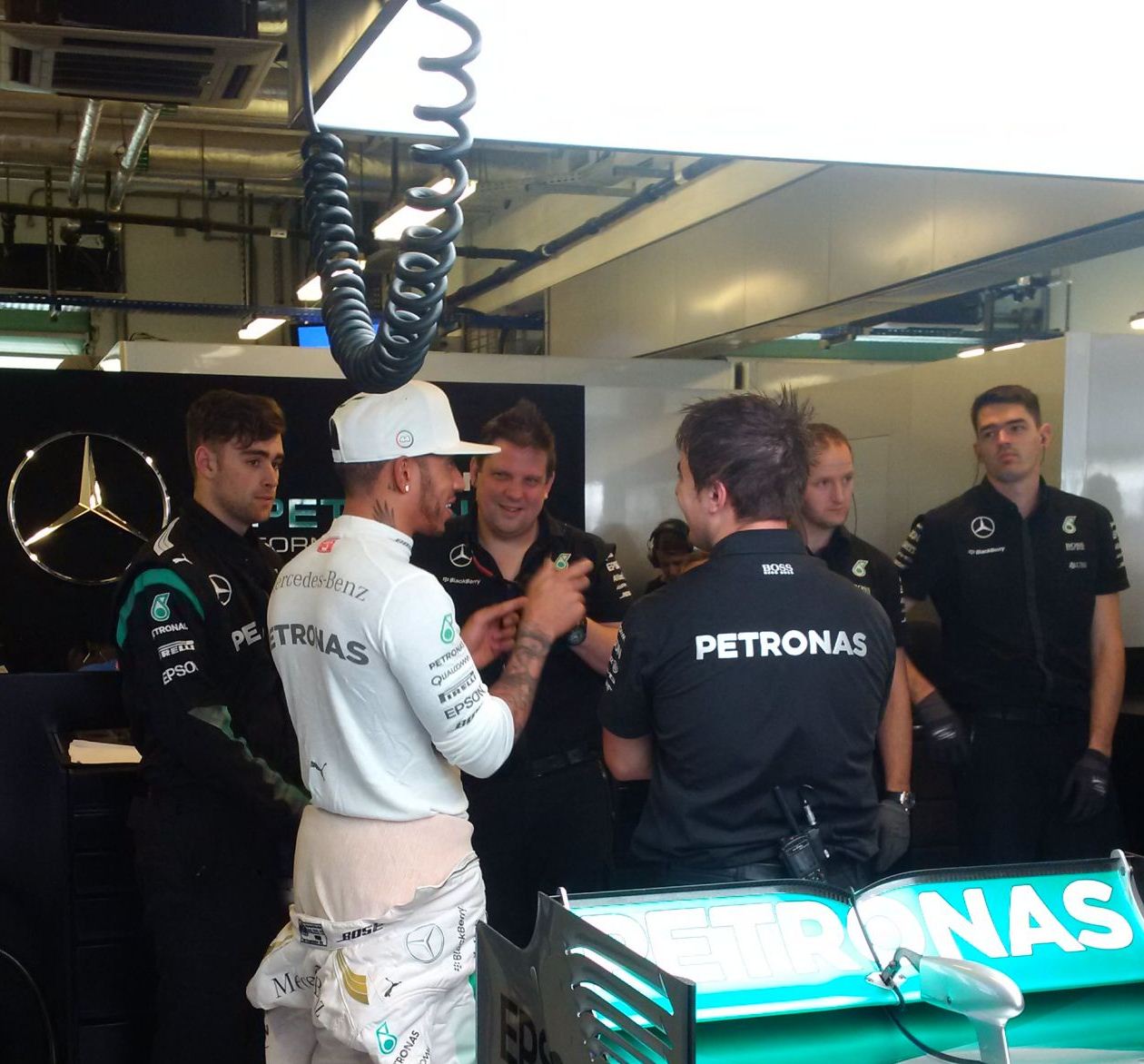15 минут до конца. Хэмилтон и Росберг возвращаются на трассу. Оба на "супер-софте".