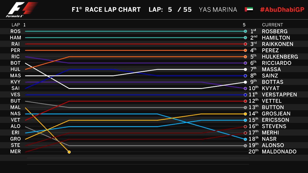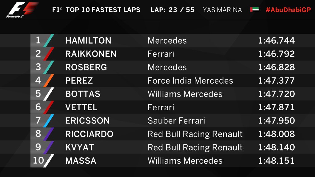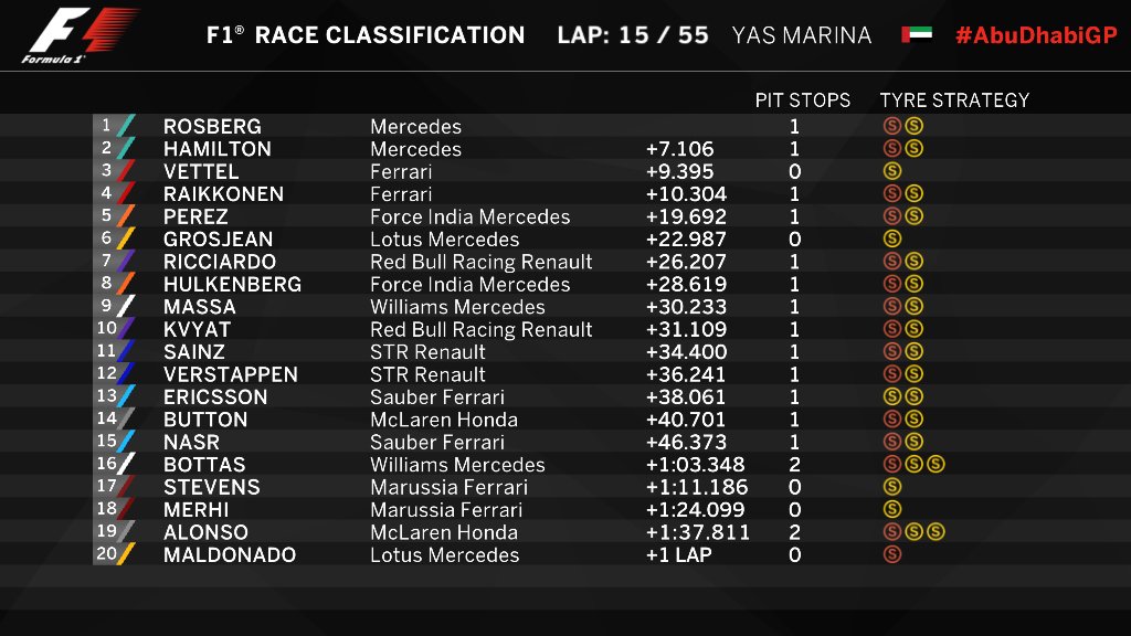 36-й круг. Топ-10: Хэмилтон, Росберг, Феттель, Райкконен, Перес, Риккьярдо, Грожан, Хюлькенберг, Квят, Масса. Напомним, что британец не заезжал на второй пит-стоп.