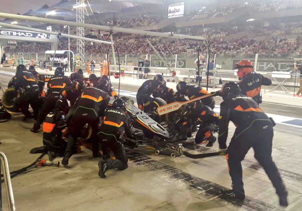 26-й круг: 26-й номер сворачивает на второй пит-стоп. До него в боксах побывали Хюлькенберг (на фото) и Стивенс. Также в гараж сворачивает Мери.