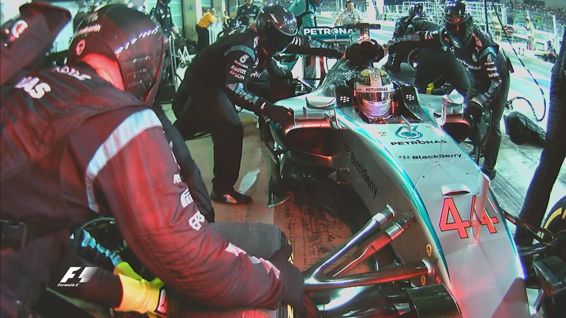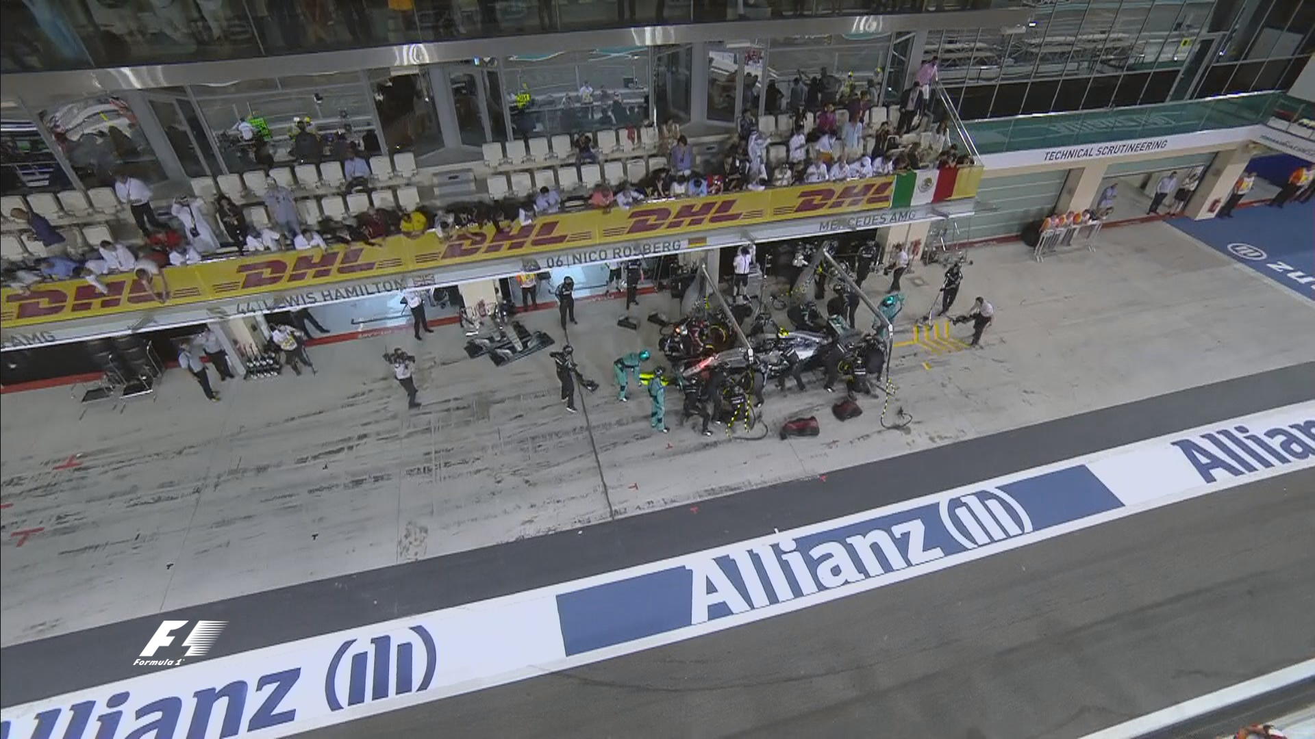 Вот это да! Боттас въезжает в Баттона на пит-лейне. Финн теряет часть болида, но возвращается на трек! Чума!