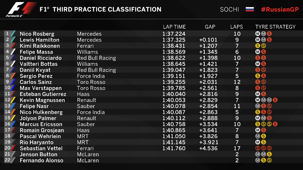 36 минут до конца. До сих пор зачетное время не показали Магнуссен, Боттас, Баттон, Масса и Алонсо.