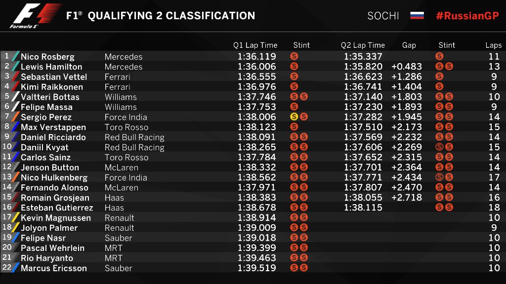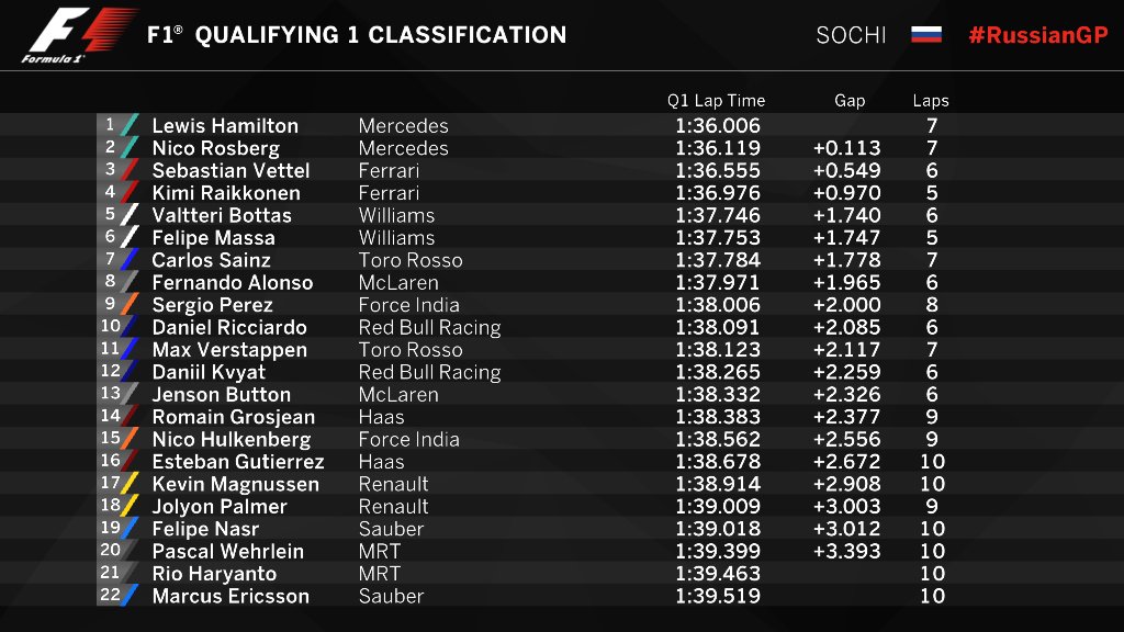 Квят опередил Сайнса всего на 0,046 секунды! Вот это да! Сегмент выиграл Росберг. Сайнс, Баттон, Хюлькенберг, Алонсо, Грожан, Гутьеррес выбывают.