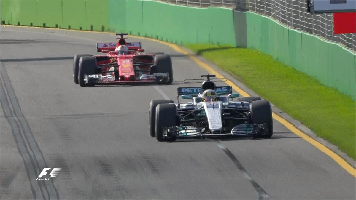 18-й круг. Хэмилтон заезжает на пит-стоп, а Феттель остается на трассе. И немецкий пилот неистово атакует, чтобы за счет более позднего пит-стопа опередить соперника. Виртуальная борьба как она есть.