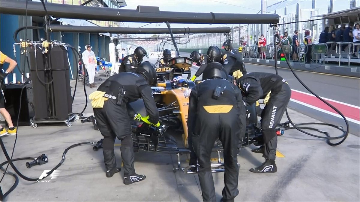 30-й круг. Риккьярдо пытается перезапустить болид, но ничего не получается. В итоге австралиец покидает машину, но... Возвращается обратно.